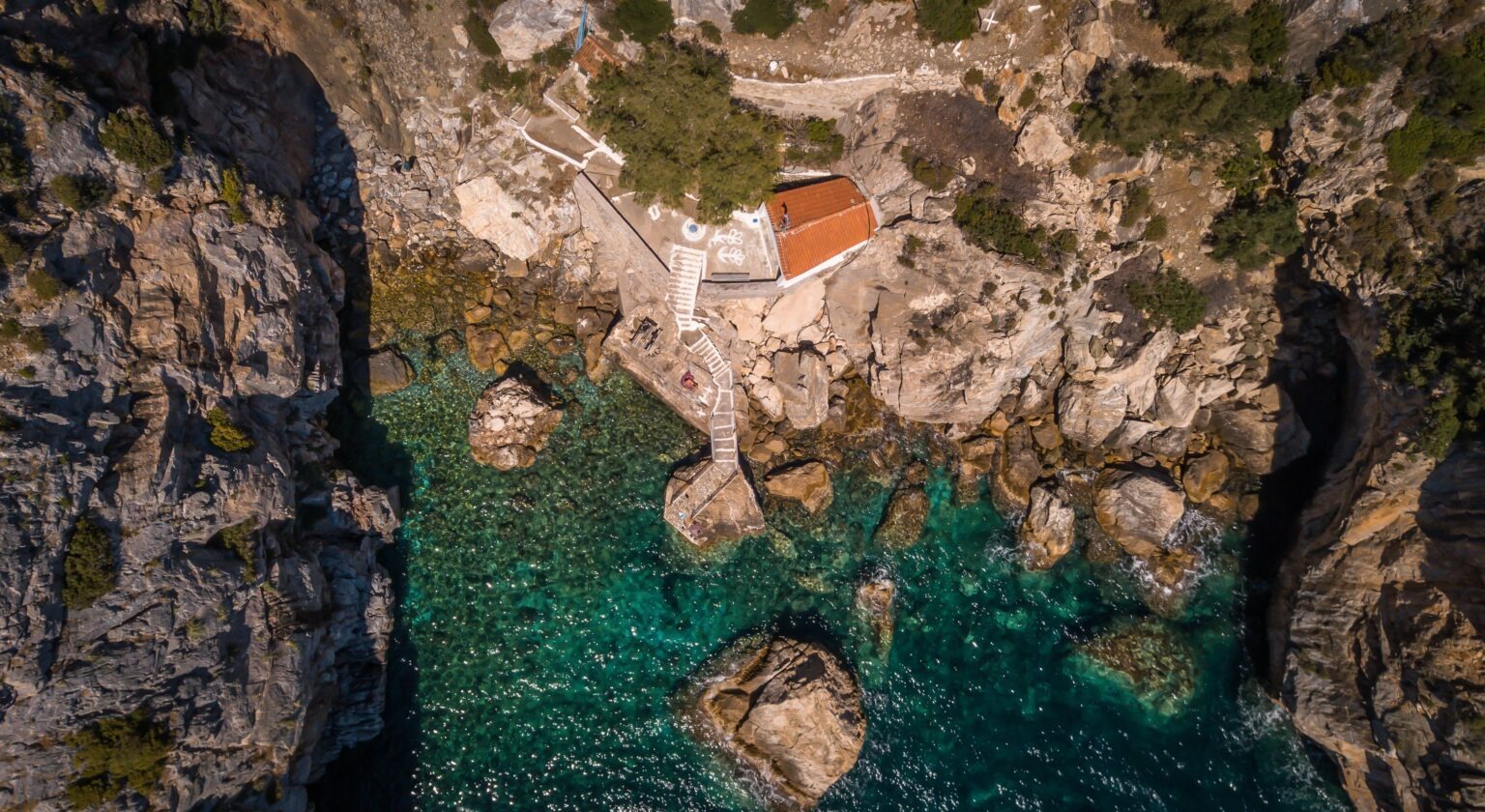 The thermal springs of Kryfti took its name from the small church of Panagia I Kryfti (“The Hidden Mother Virgin”). They are located in the southern part of the island, almost adjacent to the sea. The surrounding sea water is relatively warm, due to the effect of the springs.