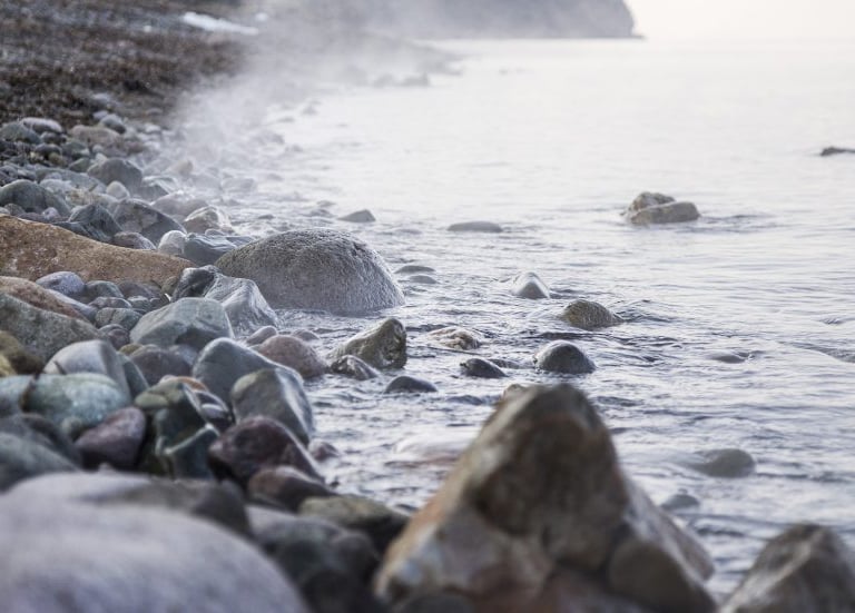 Guests can indulge in a revitalising swim in the sea or unwind along the coast, where the thermal mineral water merges with the seewater as it seeps through the rocks. A well-tended pathway connects the bathhouse and the adjacent beach. The contemporary baths are fitted with tubs and taps, enabling bathers to regulate the water temperature to their preference. On the other hand, the traditional bathhouse houses an age-old tub akin to a small pool, filled with intensely hot water that isn’t commonly bearable to dip into for longer than 20 seconds.